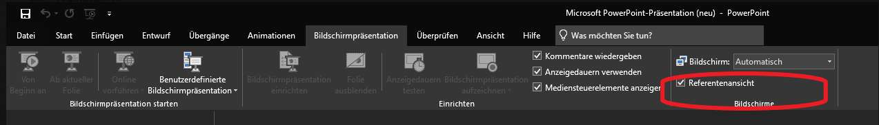 Aktivieren Sie die Referentenansicht bei Bedarf in PowerPoint