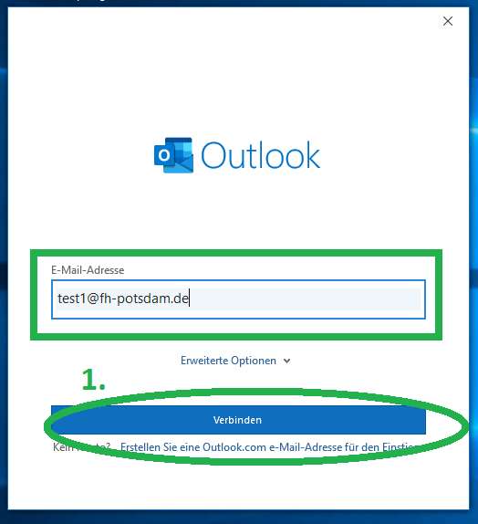 MS Outlook starten und dann die persönliche Mailadresse eintragen ...
