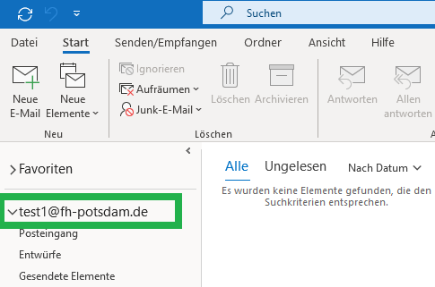 Damit ist das Konto für die persönliche Mailadresse fertig eingerichtet und kann verwendet werden.