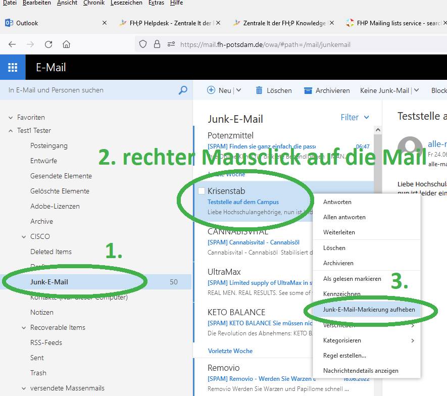 als SPAM klassifiziert wird (Falsch-Positiver-Treffer) und im