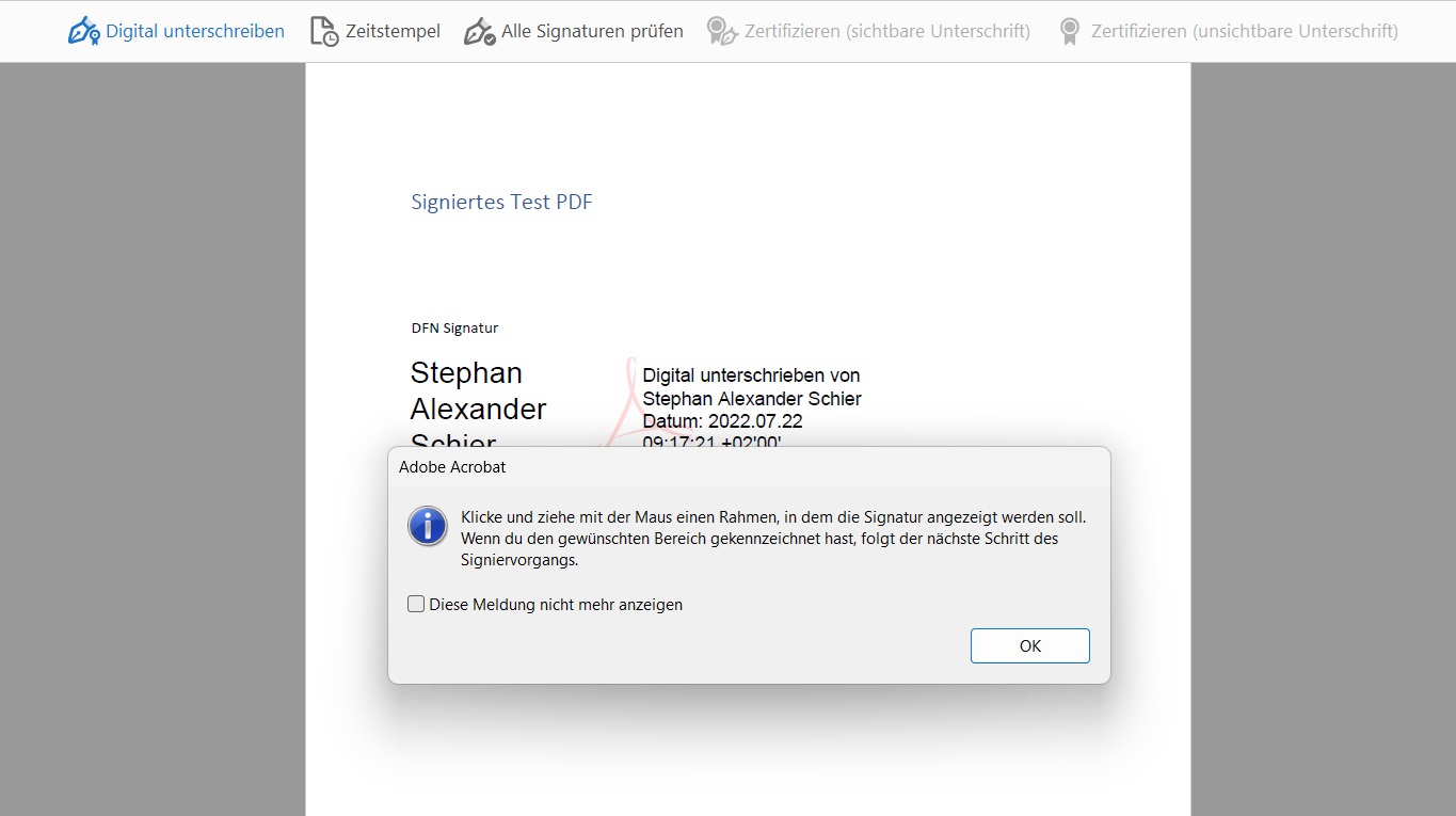 Mit eigenem Zertifikat in Acrobat unterschreiben (ohne vordefiniertes Unterschriften-Feld)