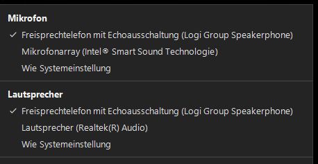 Für die Lautsprecher können Sie zwischen der Tischstation, den Raumlautsprechern oder den internen PC Lautsprechern wechseln.