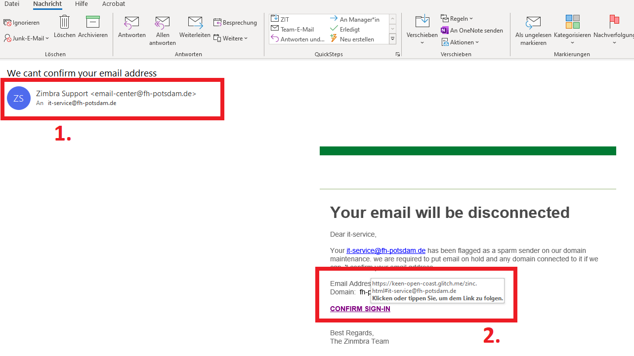 1. Die Absender-Mailadresse email-center@fh-potsdam existiert nicht.