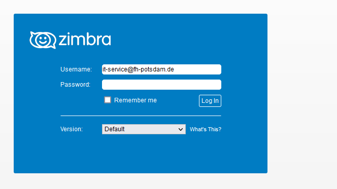 Wenn Sie trotzdem auf den link geclickt haben, dann öffnet sich eine Webseite mit dem nachgebildeten Webinterface eines Zimbra-Servers: