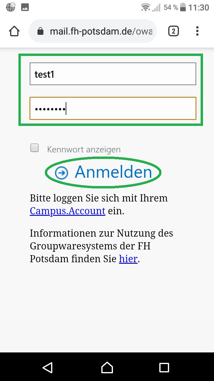 Die URL https://mail.fh-potsdam.de im Browser des Handys aufrufen.