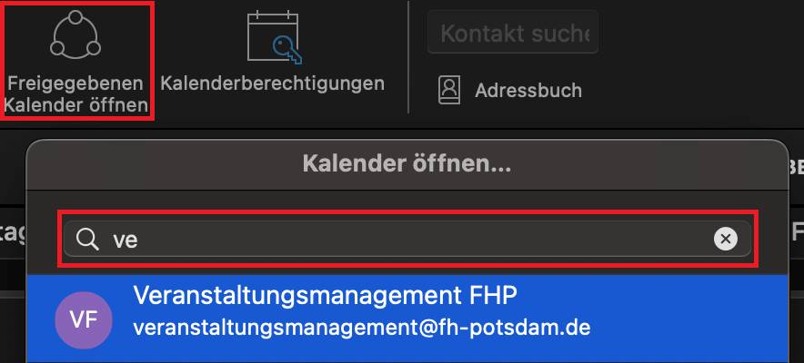 Wählen Sie den Reiter Freigegebenen Kalender öffnen und wählen Sie Kalender öffnen aus