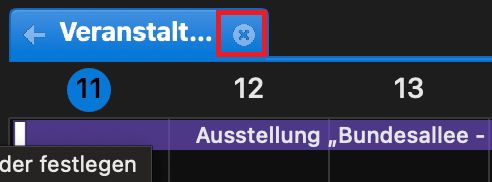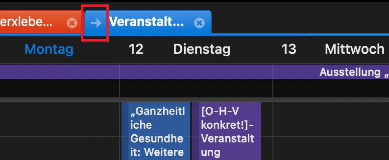 Die Registerkarte wird wieder nach rechts verschoben. Der ausgewählte Kalender wird nicht mehr im Überlagerungsmodus angezeigt.