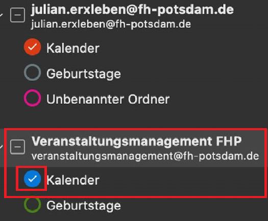 Der ausgewählte Kalender wird neben dem bereits angezeigten Kalender geöffnet. Jeder aufeinanderfolgende Kalender wird neben dem zuletzt geöffneten Kalender geöffnet.