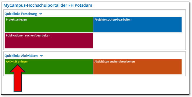 Aktivitäten sind über die bestehenden Forschungsobjekte hinausgehende wissenschaftliche Tätigkeiten von Wissenschaftlerinnen und Wissenschaftlern. Als Wissenschaftler haben Sie in HISinOne-RES die Möglichkeit Ihre eigenen Aktivitäten einzugeben, die dann auf Ihrer persönlichen Detailseite angezeigt werden.