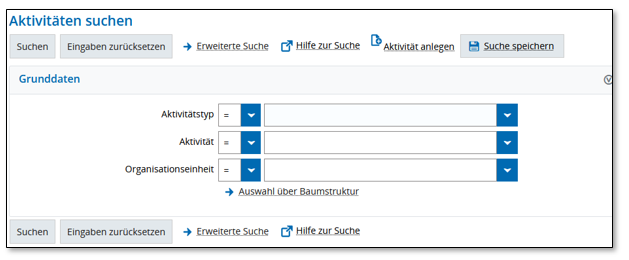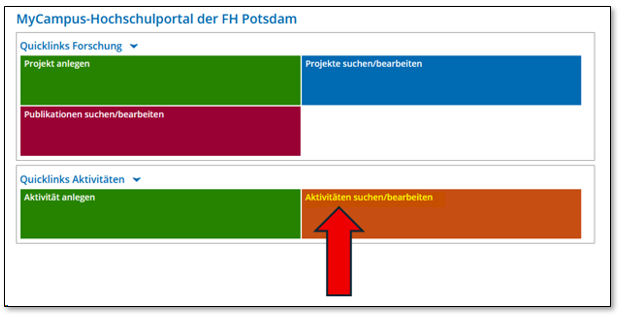 Wenn Sie Ihre eigenen Aktivitäten suchen bzw. bearbeiten wollen, klicken Sie