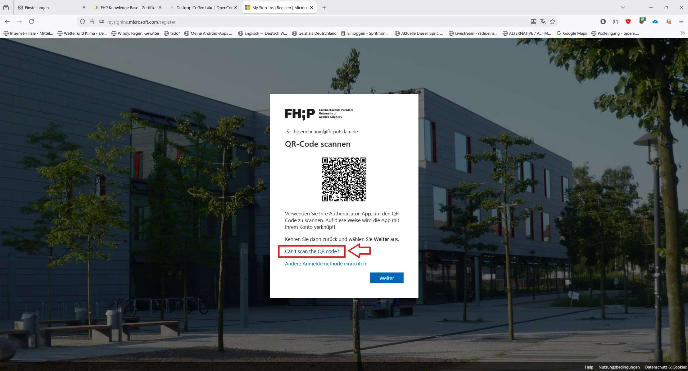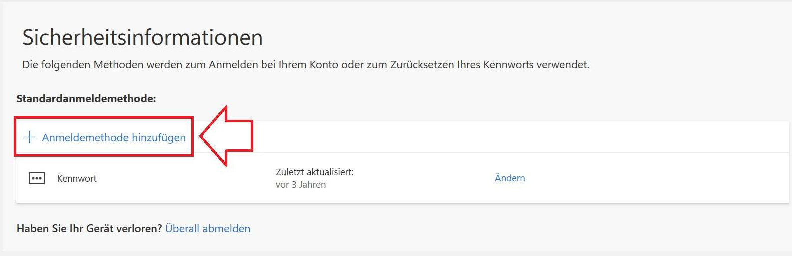 -wechseln Sie ggf. über "Mein Konto" in die Registerkarte "Sicherheitsinformationen", sollte der obige Link Sie nicht direkt dort hin führen