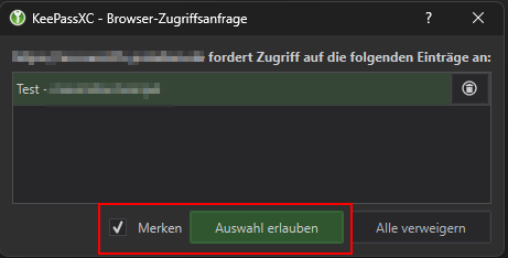 Die Einrichtung ist abgeschlossen. KeePassXC kann nun beim Anmelden im Browser helfen.