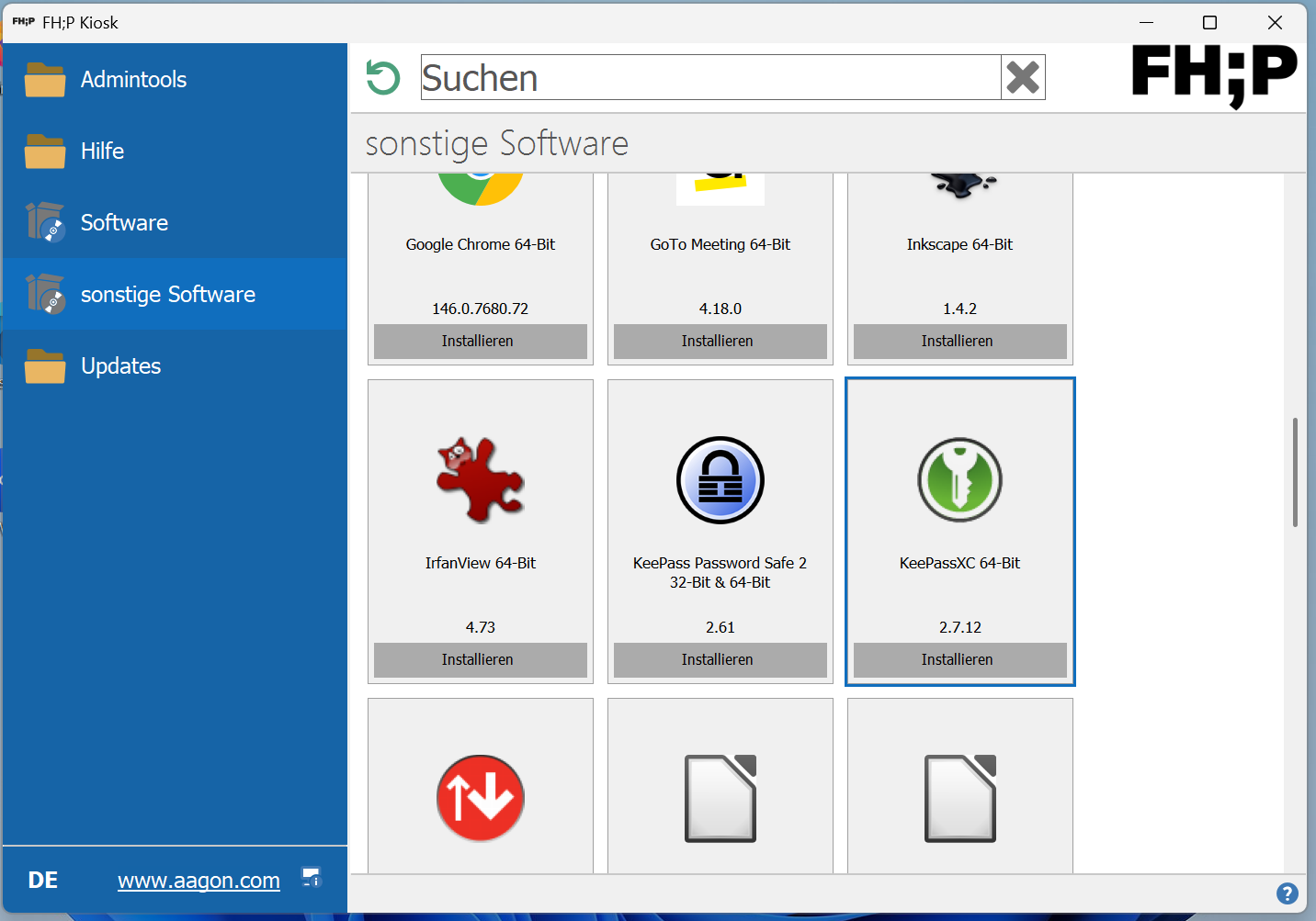 Die Anwendung kann einfach über den FHP-Kiosk installiert werden.