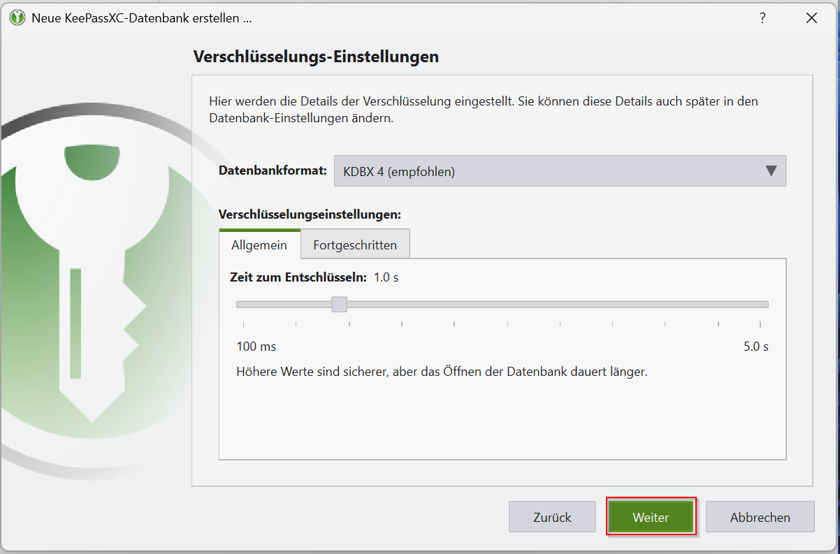 Bei den Verschlüsselungs-Einstellungen kann einfach "Weiter" geklickt werden.