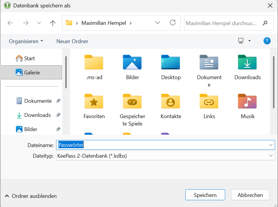 Im letzten Schritt muss nur noch ein Ort angegeben werden, an dem die Datenbank gespeichert werden soll.